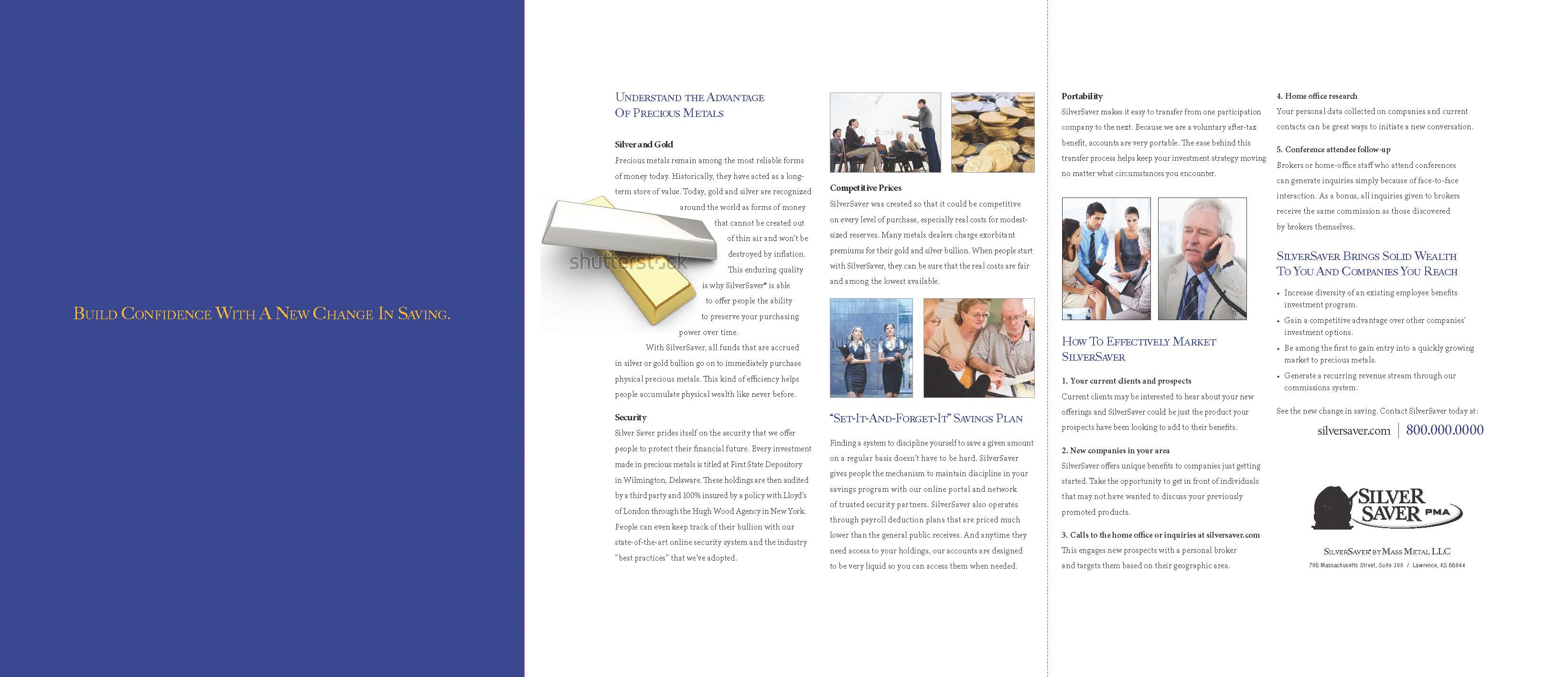 Precious metal accumulation is a niche of the financial market that continues to grow. Helping Silver Saver standout amidst all personal banking options was the copywriting challenge for this suite of brochures.