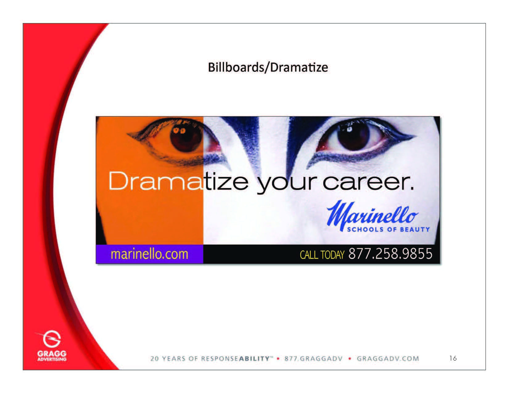 Marinello Schools of Beauty has a legacy in the beauty education industry–they just didn’t know it until we started working together. For this presentation, I focused on giving Marinello a stronger position for their brand to compete within the beauty school market in everything from print and direct mail to TV and collateral.