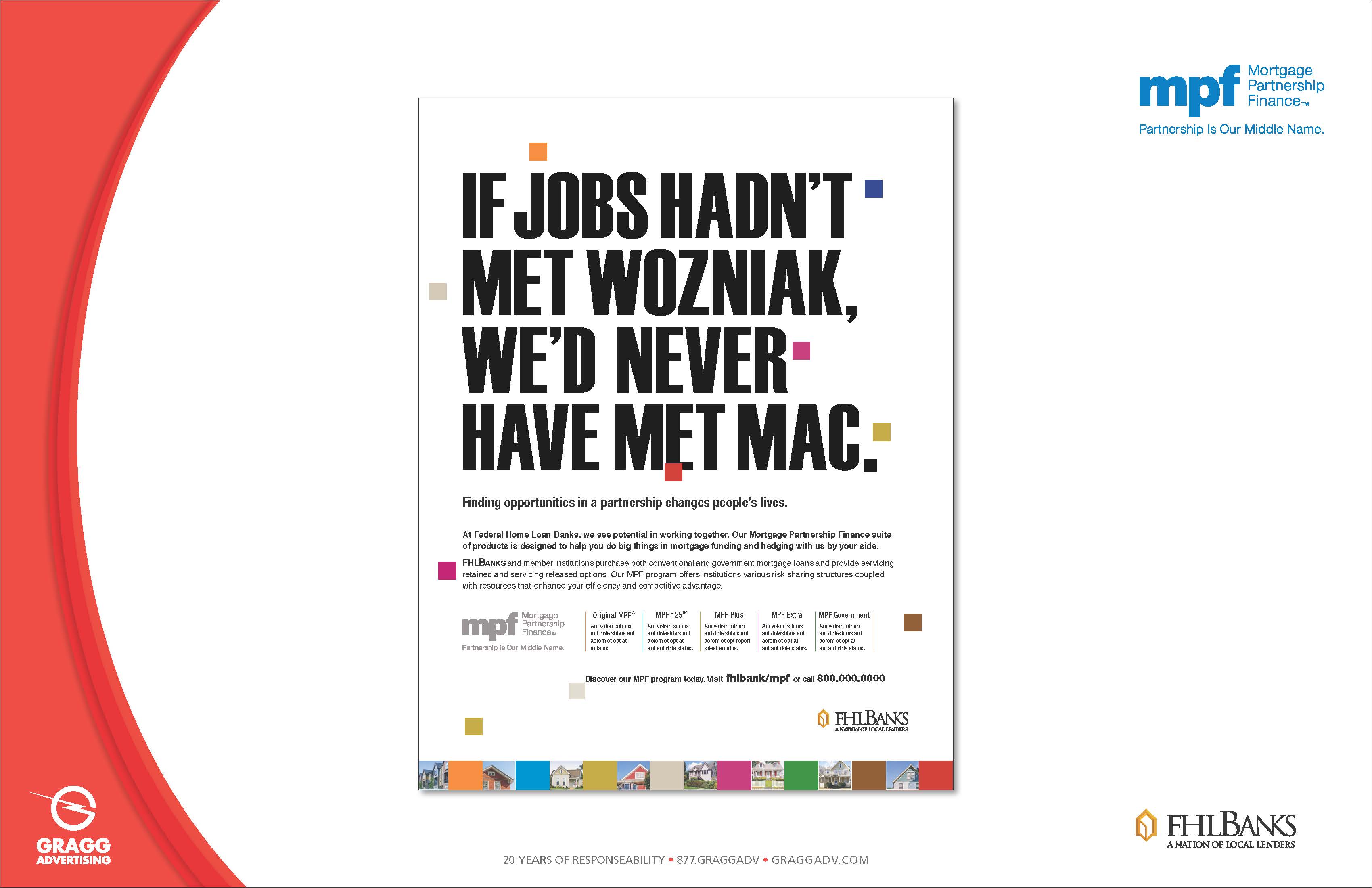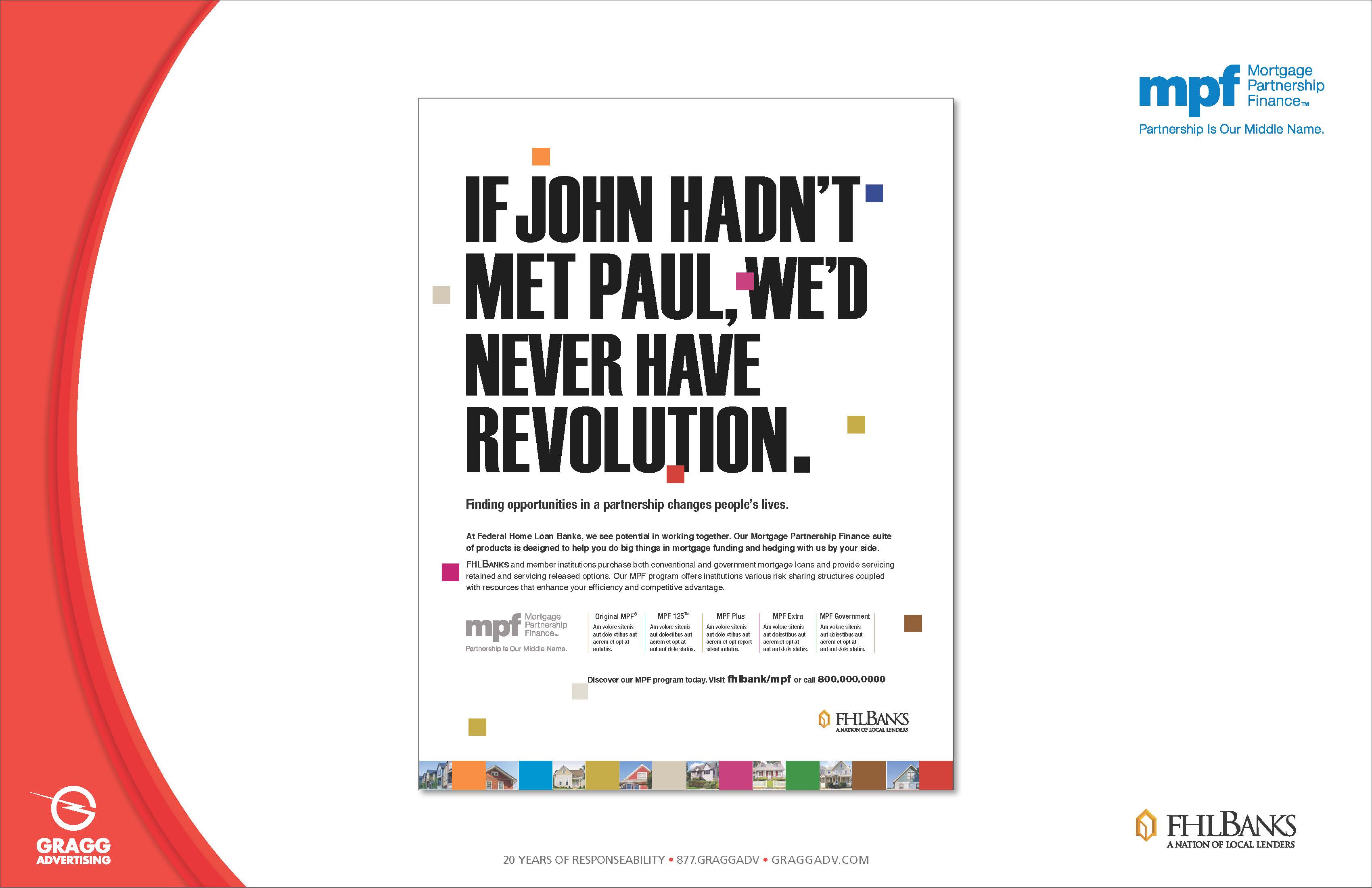 Federal Home Loan Banks came to us in need of a re-brand. We gave them a new identity, and an integrated brand strategy to go along with it. I developed all copy for concepts and ads seen here in addition to pitching their web and mobile strategy.